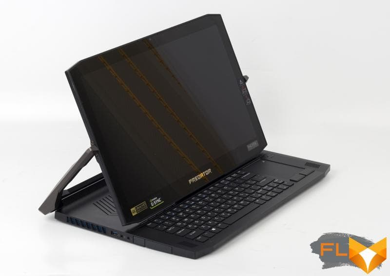 You quickly get used to good things – and I’m not just talking about the ability to drag a computer in a backpack. Recently, we have mostly been visiting laptops with thin display bezels. The Predator Triton 900 has 2cm bezels on the top and sides, which is quite noticeable at first. The idea is spinning in my head that a larger diagonal matrix could be installed in this model. The display in Triton is touch-sensitive, and this choice is justified, perhaps, by the main design know-how of the hero of today’s review. Pay attention to the photo below.